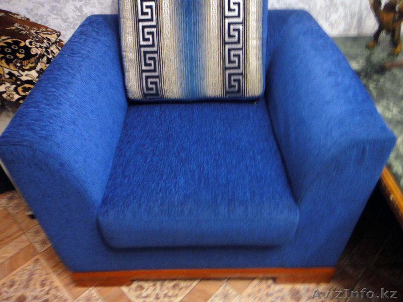 Диван размеры: длинна 2 метра 60 см , ширина 1 метр 85 см. Кресла размеры: длинна 85 см , ширина 90 см. Ткань Шинил-легко чиститься , цвет синий. По немецкой технологии сделал, пружинный блок. Приобретён в январе 2011 года, эксплуатация год. Собственная цена 275 тыс.тг. Продам за 150000 торг.