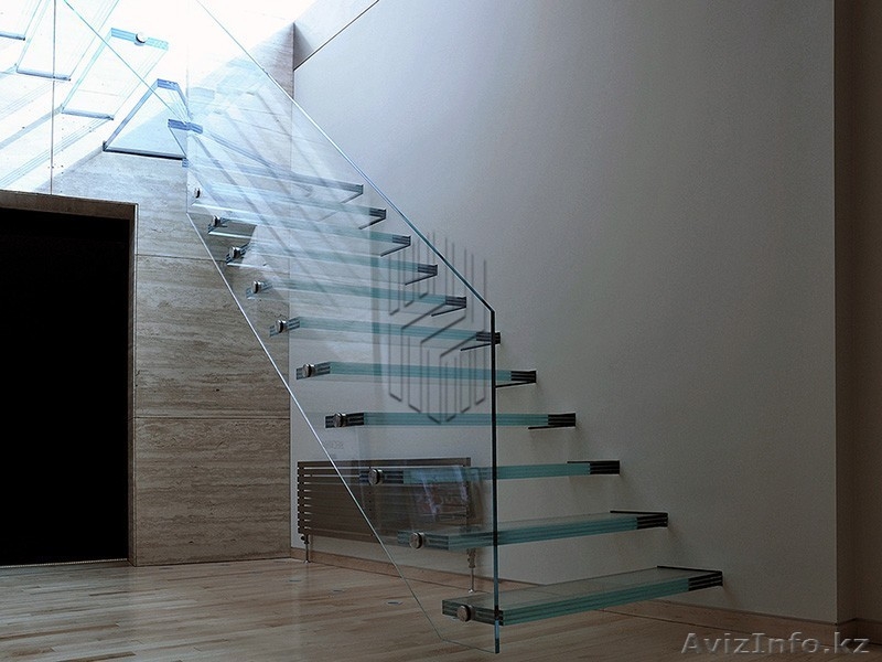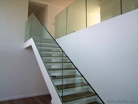 В последнее время все чаще в дизайне помещения стали использовать стеклянное лестничное ограждение. Такой элемент интерьера, как лестница со стеклянными перилами создает ощущение большого свободного пространства. Иногда в интерьере используют лестницы, которые снабжены стеклянными ступенями, несмотря на кажущуюся хрупкость, стекло, специальным образом обработанное, может выдержать большие физические нагрузки. Прозрачные и невесомые лестничные ограждения из стекла акцентируют на себе внимание своей воздушностью и оригинальностью. Благодаря своей универсальности, лестничное ограждение со стеклом может быть использовано в частных домах, офисных помещениях, торговых центрах. Особенно часто используется цельностеклянное лестничное ограждение для реализации интерьера в стиле хай-тек, но также хорошо подходит к помещениям, оформленным в других стилях. Например, можно нанести на поверхность стекла фотографию и с умелой подсветкой комната полностью преобразится.