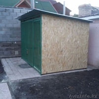 профтруба 40мм х 20мм, профтруба 20мм х 20мм, профнастил оцинкованый 1мм, OSB лист 10мм, утепление - минеральная вата, краска для металлоизделий (цвет на заказ).